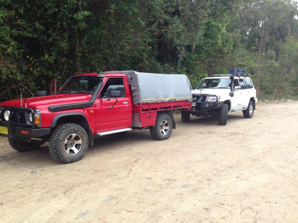 Well the day started for me getting up in the dark and as the dawn broke it revealed a lovely day. I left at 5am with a 4 hour drive to the starting point at the Tewantin Ferry. I met up with Mark, Arie and Arie's mum (sorry I am terrible at remembering names). The further I headed north the more clouds. We stopped and aired down at the Third cutting on to the beach. There was an on shore breeze and a bit of rain but was fantastic driving along the beach. There were so many cars and campers on the beach it was the busiest I have every seen it, apparently there was some Cooloola Cleanup Day happening. We stopped to look at some coloured sand cliffs and where the Kings bore track once lead down to the beach, and then a quick stop at Fresh water camp ground. The sand was wet and there was no concern at all about getting bogged. We headed to the Lagoon and past a Landcruiser bogged trying to get off the beach and this had us wondering why he got bogged and why he just didn't reverse back.