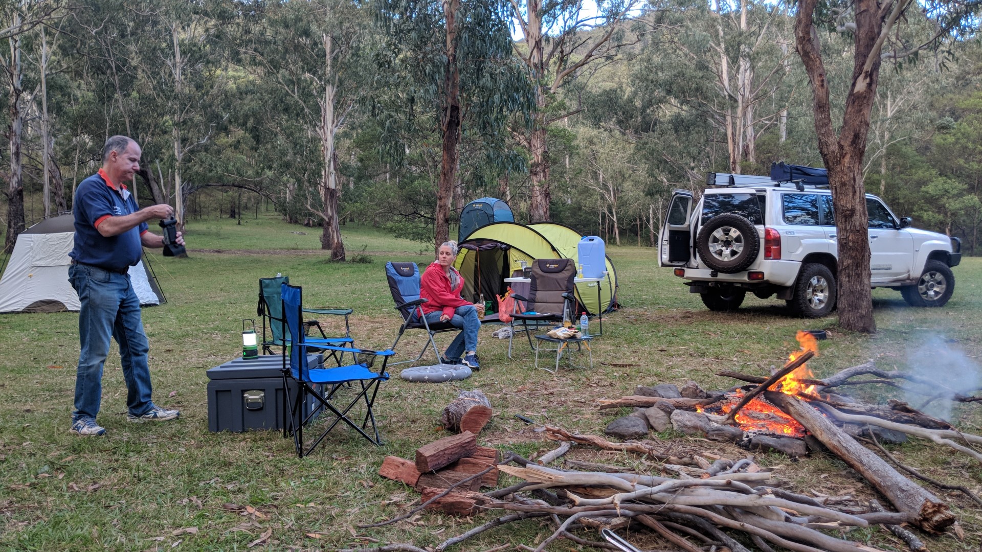 We decided to head for the campsite before sundown so we would have plenty of time to tuck into the cheese, cracker, wine, and all the nibblies prior to a steak dinner. A very pleasant evening around a campfire with excellent company - even Pep-C was feeling very mellow by next morning. And the weather just got better and better! It's a tough life - but someone has to do it!