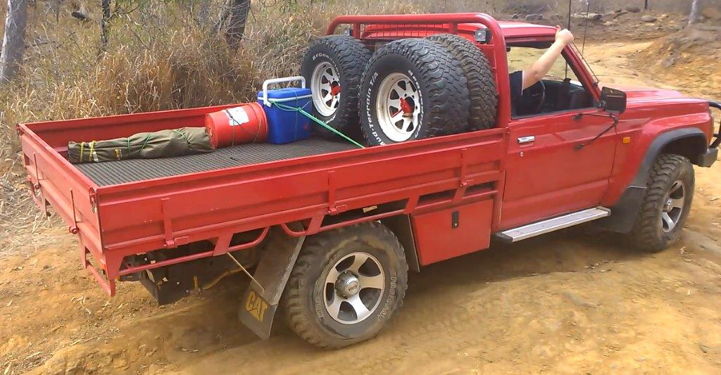 The original owner wanted a Lower tray so he lowered the tray. Then he wanted to store the spare wheel under the tray, so he lowered the fuel tank. During the whole trip to the Springs 4x4 I was freaking out about the fuel tank and whilst it only had a few minor scratches I had no hesitation to remove the spare tire and raise the fuel tank again upon returning home.