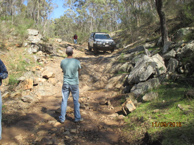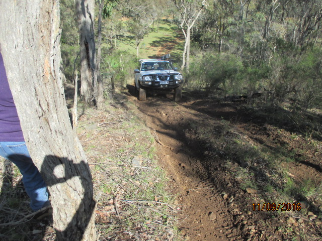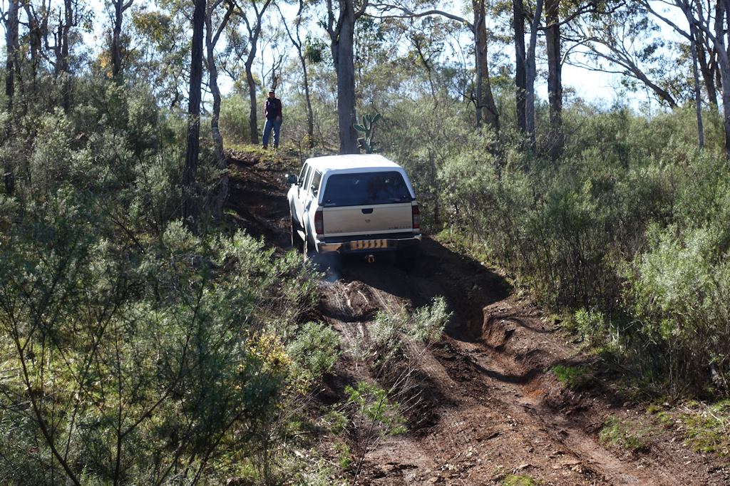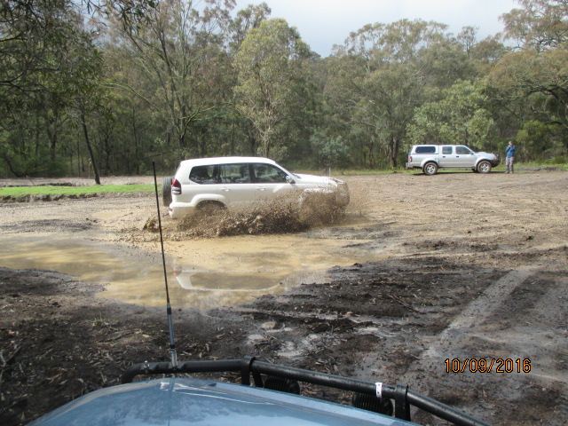 The afternoon involved driving around the back tracks of the park, up Love hill and Bald Hill. The wet weather made it very interesting and we did have an early recovery as Cos slipped on the wet surface into a very deep rut and was sitting on his diffs. Now before you Toyota lovers start bagging the Nissans for needing a recovery, there was a certain Prado that needed some Treds to help it get out of a creek bed as well.