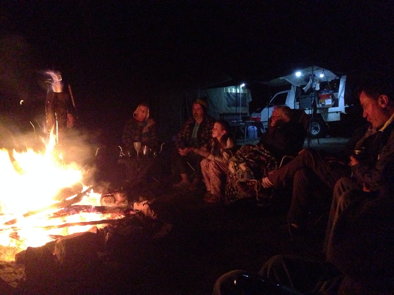 Steve and Les gathered a heap of firewood for the night. They even found a great chimney log. Whilst looking for a second chimney log I looked into a hollow and found a tail. After banging the log on the ground to try to remove the tail, we noticed that it had claws and there was also a little tail next to it. We put that log aside for the very scared native creature to escape in the night. In the late evening I noticed that the mother lizzard was gone and the baby was still there. I guess the mother found another log in the evening and came back for baby because they were both gone in the morning.