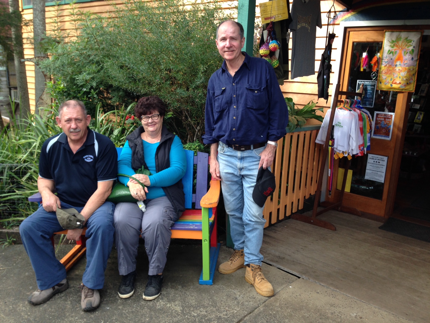 Karen seemed to enjoy herself diving in and out of shops in Nimbin while Alan waited outside with a worried look.